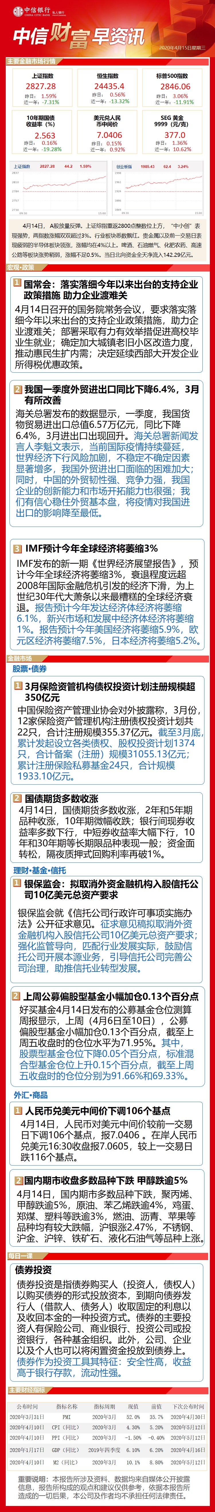 中信财富早资讯4月15日