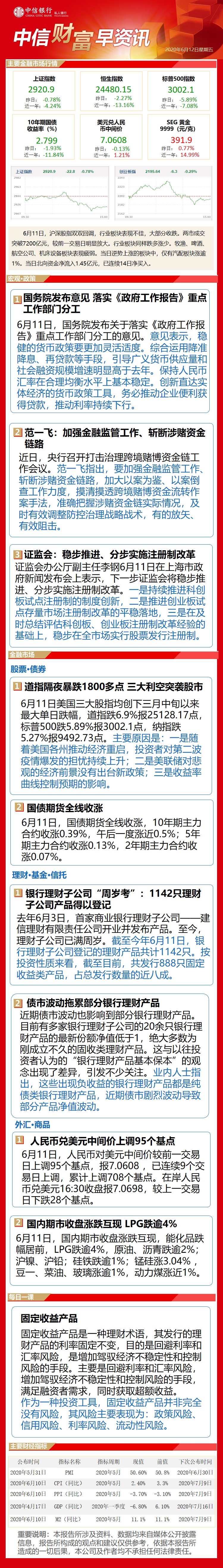 中信财富早资讯6月12日
