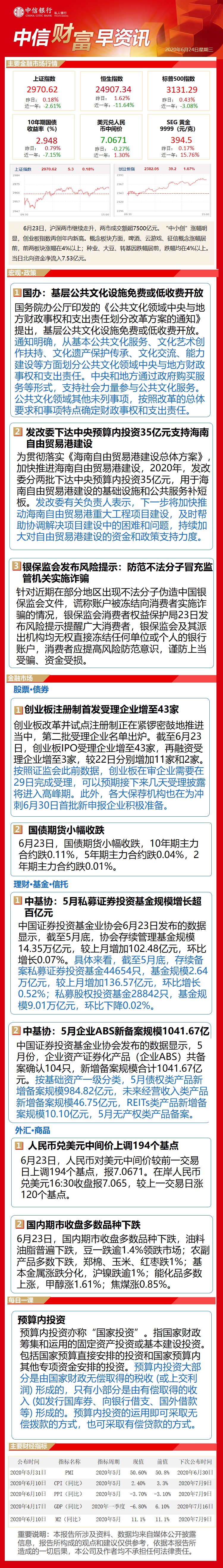 中信财富早资讯6月24日