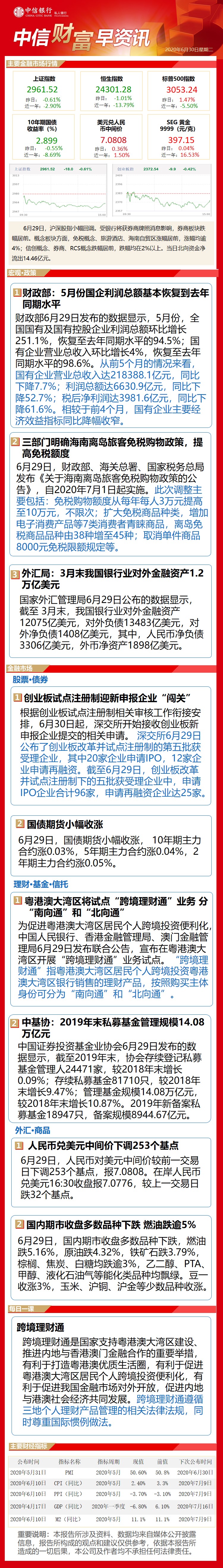 中信财富早资讯6月30日