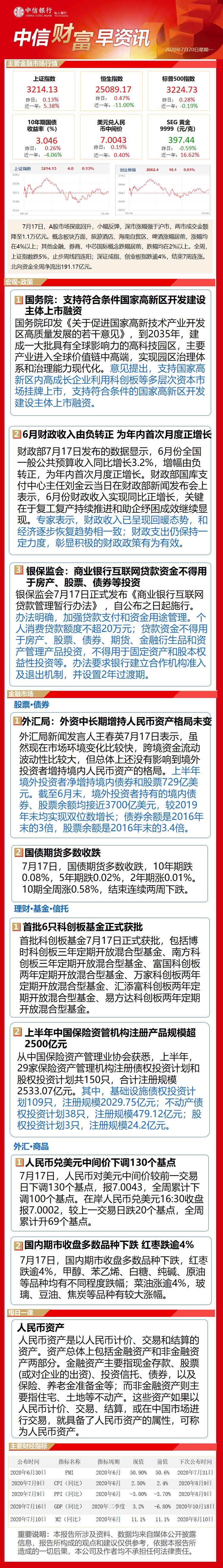 中信财富早资讯7月20日