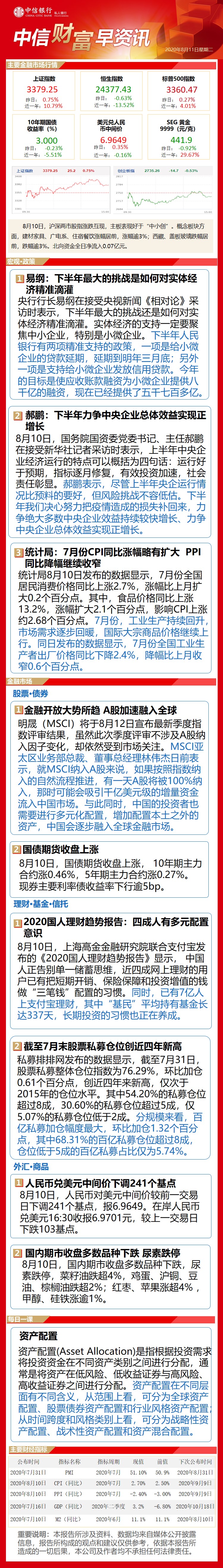 中信财富早资讯8月11日
